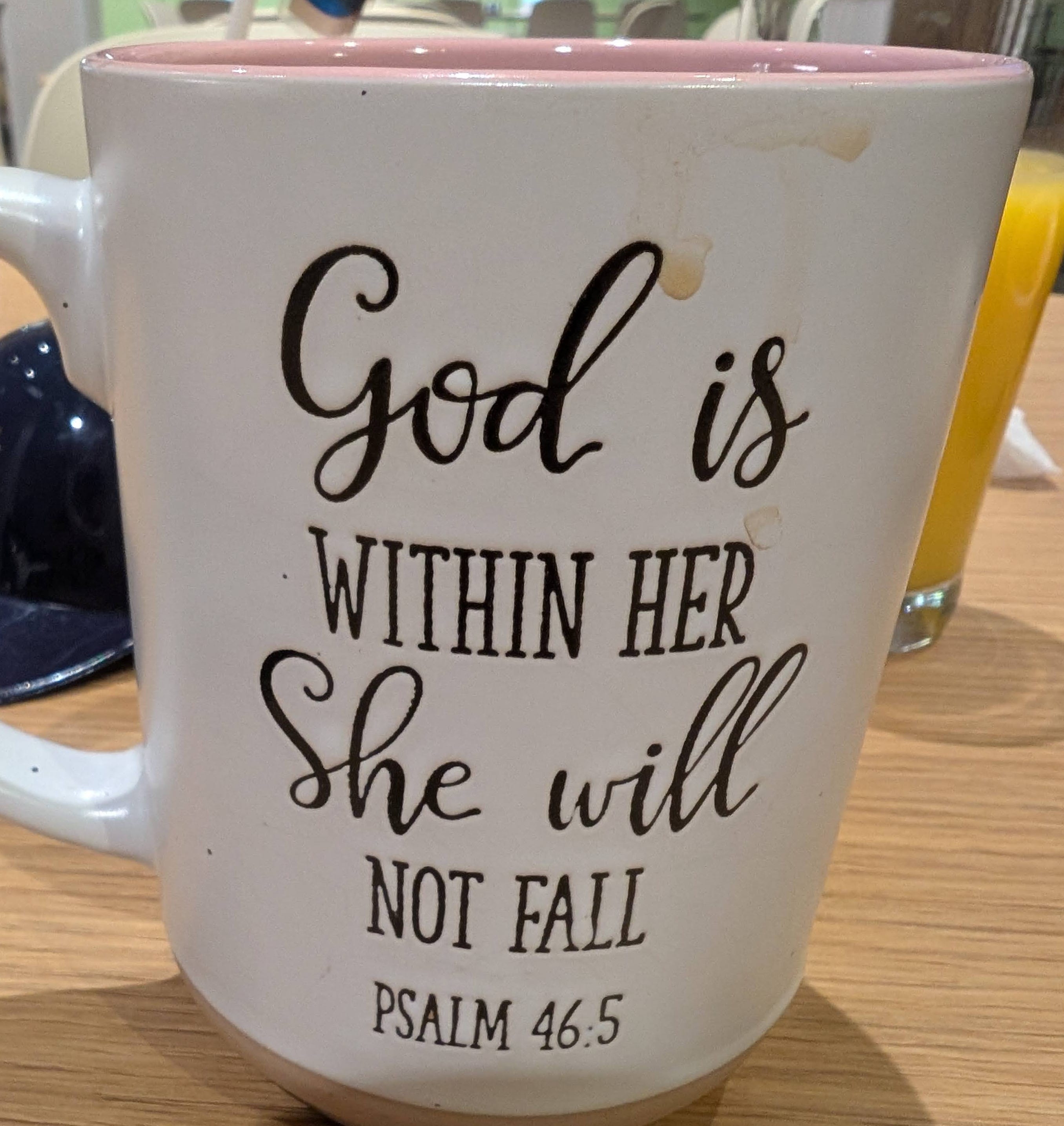 “I don’t think that’s what that verse says,” I commented as I sat down with my cup of coffee at our table at the medical guesthouse where we’re staying this week.