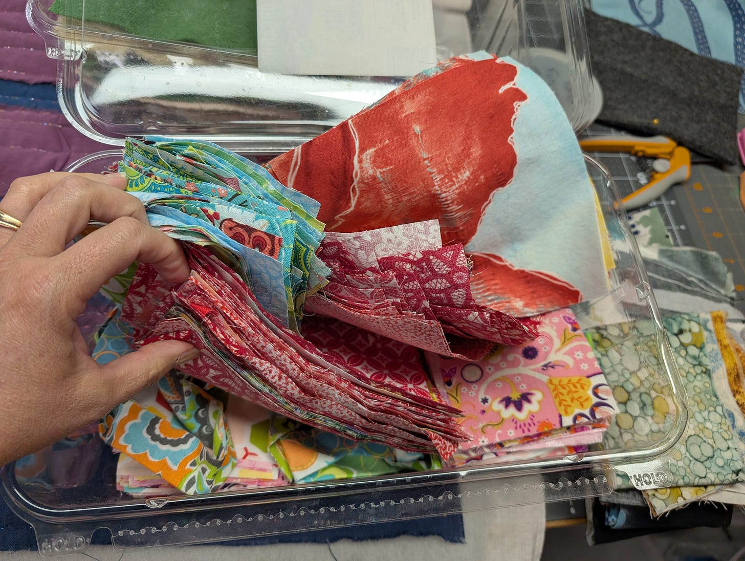 That means that this particular fabric, which I have stashed in a bin because “I should make something with that!” is going away. I’m sending it on to a church quilting society where it can be put to use in quilts for folks abroad, or for a “fancy” quilt that can be auctioned off for a fundraiser.