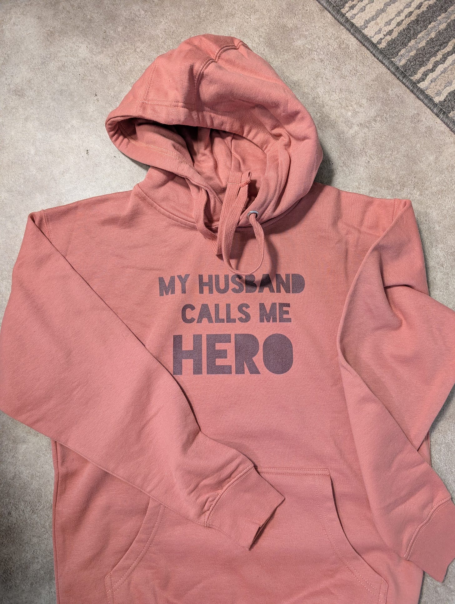 I recently decided to treat myself to two new hoodies. I had them custom-printed and had fun designing them. Clever or snarky hoodies rarely come in colors I prefer, so this time I got to choose! The first is based on something John said to our primary care doctor, in whose office we landed recently for a pre-operative physical.