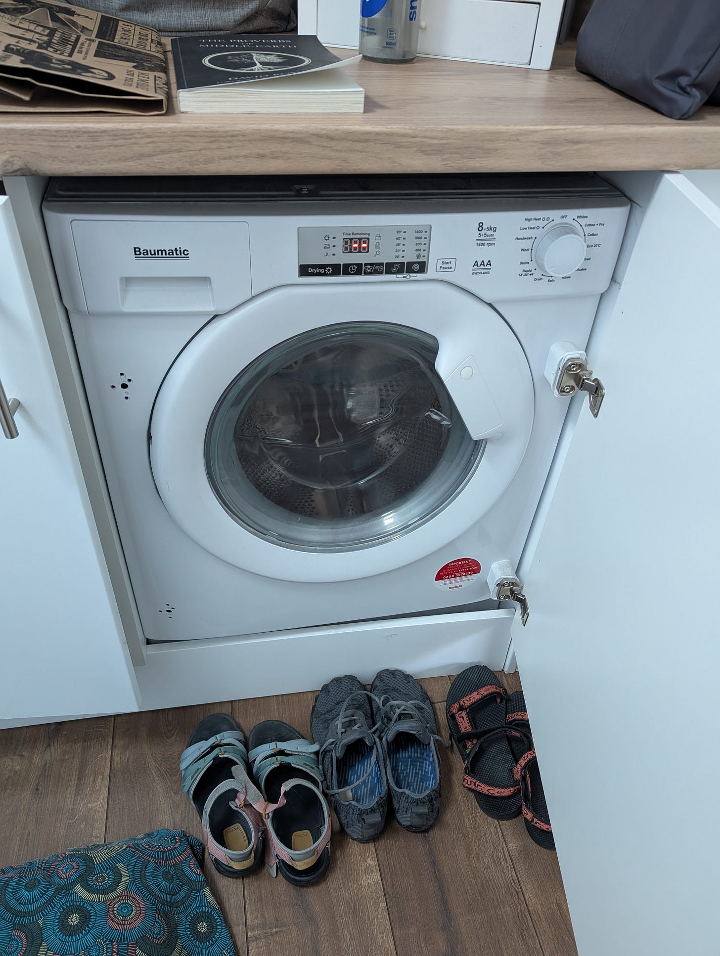The washer sings a little song when you power it down. It’s ridiculous, but I don’t mind. At least it’s in tune, unlike the Kangaroo Omni brand feeding pump we are using, which plays a short theme by JS Bach, out! of! tune! when you power it up.