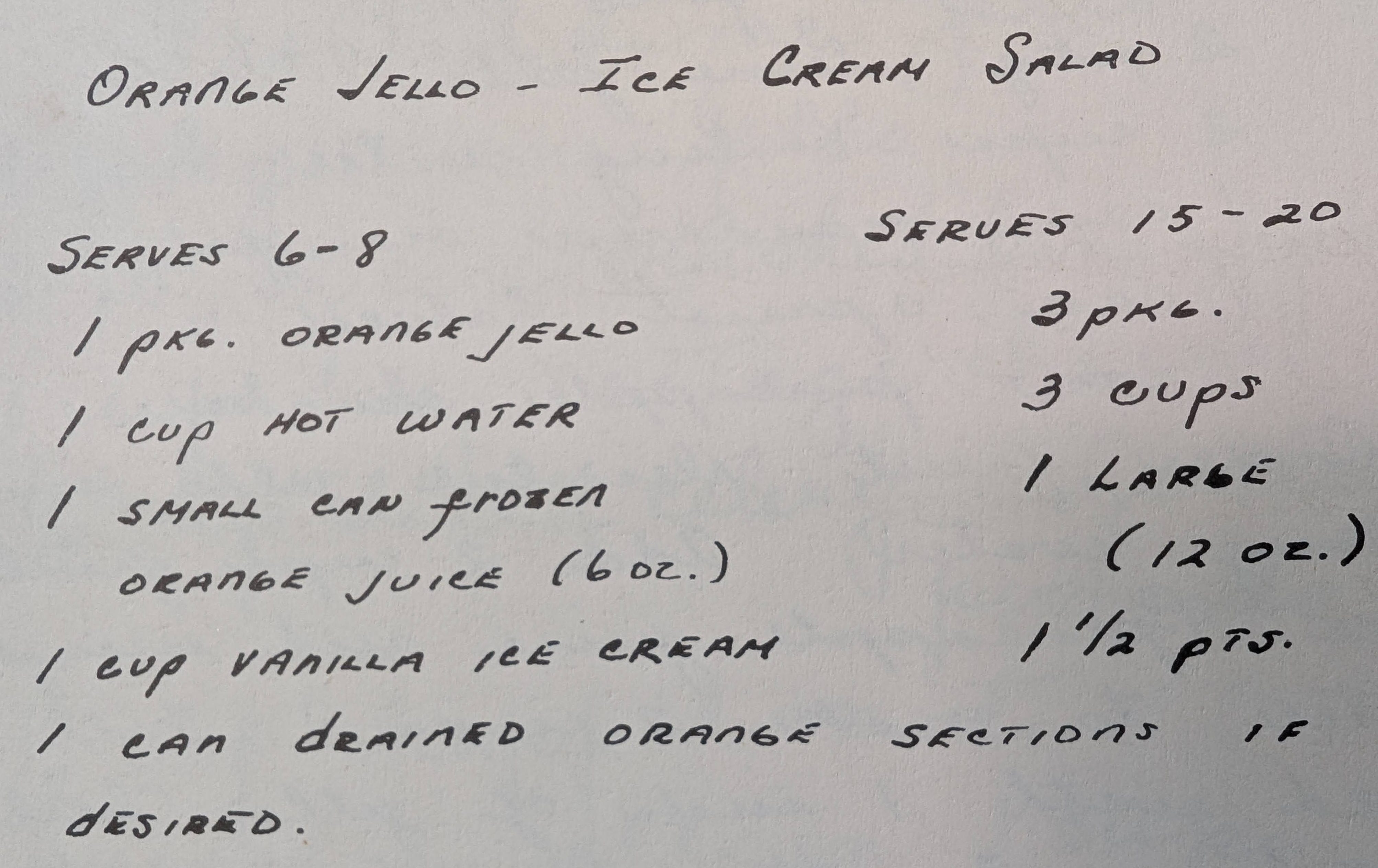 The salads chapter does, yes, contain a lot of “salads” involving Jell-O. Some are seriously questionable. Lemon Jell-O and tuna should never be together. But how about an orange Jell-O Ice Cream “Salad”? That sounds pretty fun.