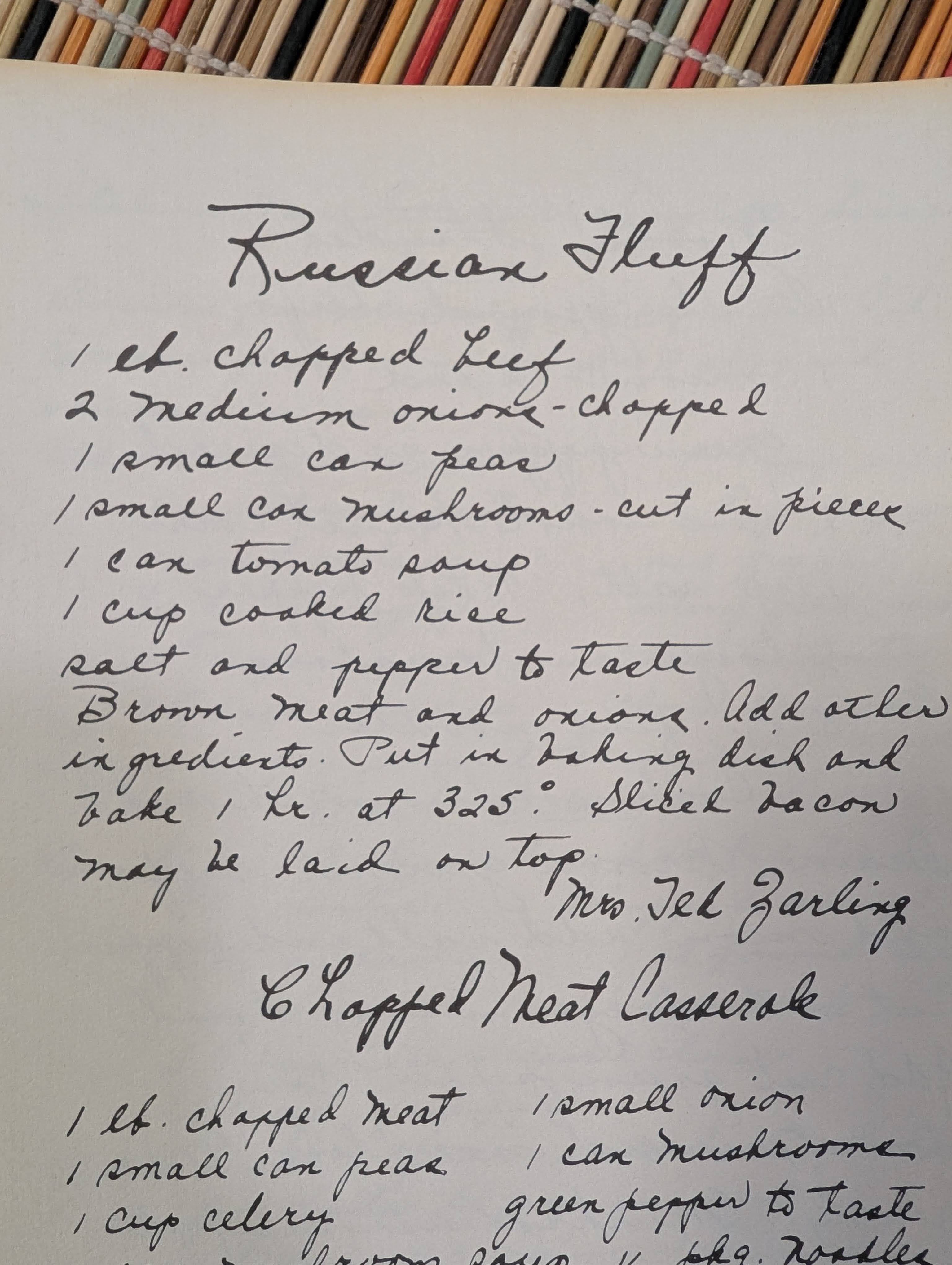 I’m teasing. I’m not sure if this is one of the church cookbooks in my mom’s collection or not. She has several church cookbooks.